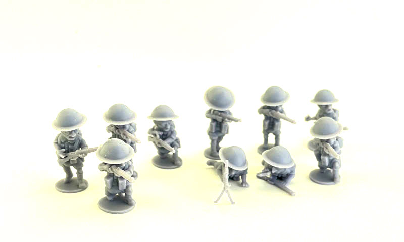 Manufacture Product Number : 18C-1112 This is a squad of cartoon British 8th Army Infantry. They are posed in a variety of firing poses. They are in their own cartoon scale, but the models are fairly close to a 28mm scale height wise. It includes a squad of ten models in a variety of poses. NOTE: ToonKrieg is 3D printed in house by Michigan Toy Soldier using files and designs by 18charlie. Basic modeling skills are required. With the exception of small, delicate parts we clean most parts of supports but some support artifacts may need to be removed prior to building. CA (super glue) is needed for constrution. We recommend VMS Flexy 5K CA for 3D Printed Parts (VMS-CM12-3D). Some kits are printed to order and can take up to one week to send. |