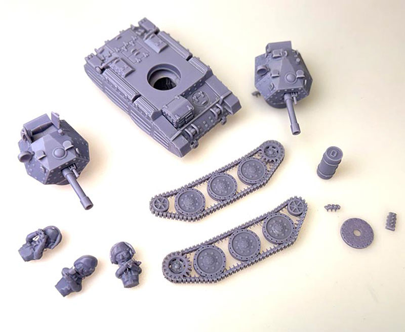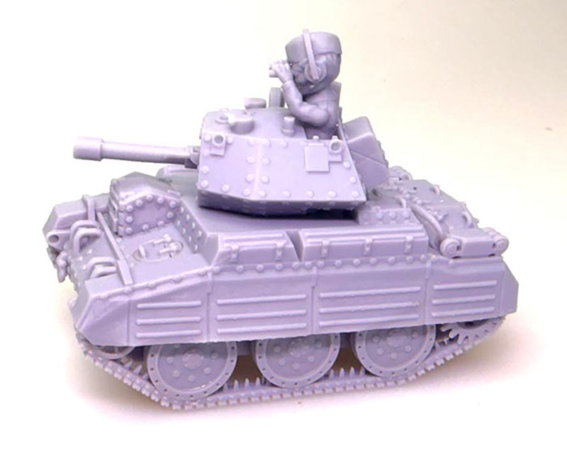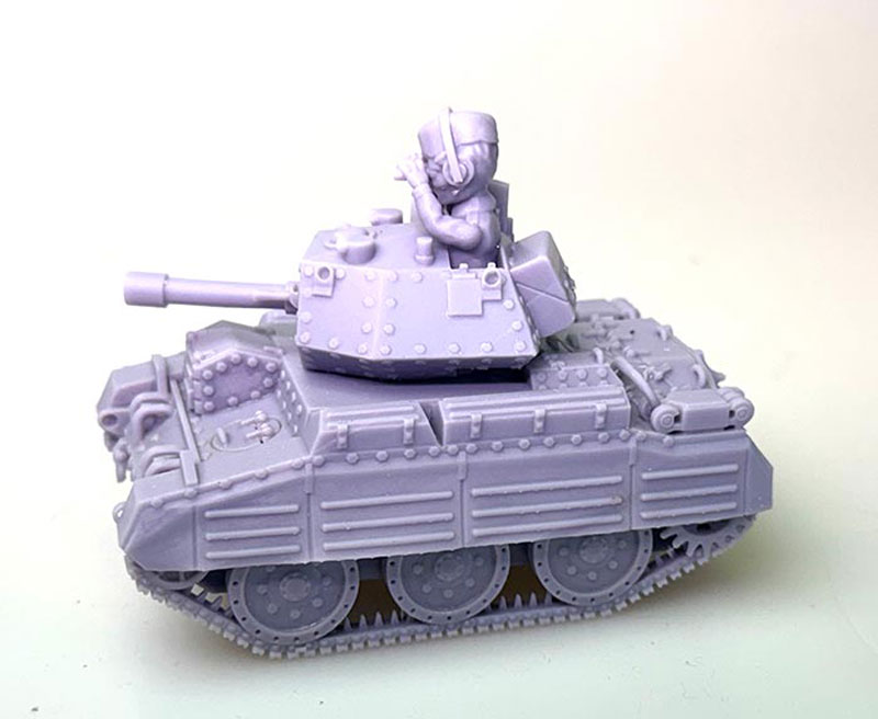 Manufacture Product Number : 18C-1113 This is a cartoon version of a British Crusader Tank. It’s in its own cartoon scale, but the crew are fairly close to a 28mm model height wise. |