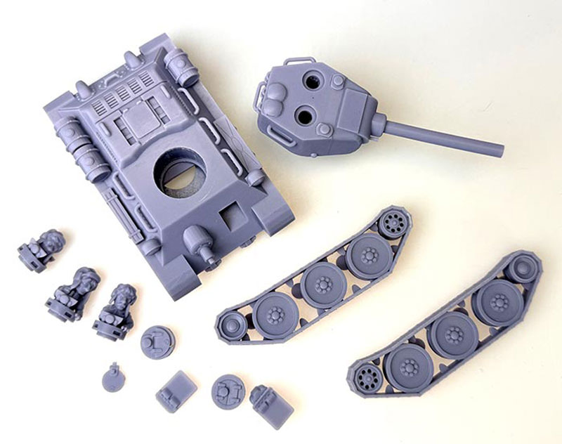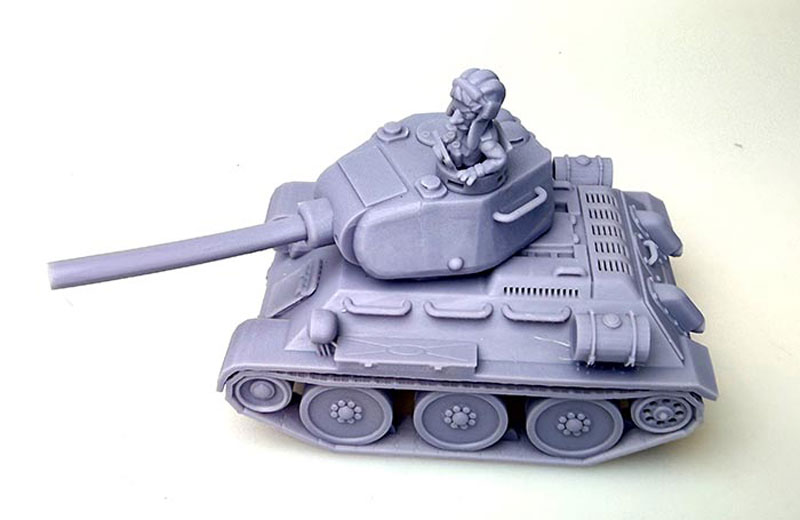 Manufacture Product Number : 18C-1115 This is a cartoon version of a Russian T-34/85 Tank. It’s in its own cartoon scale, but the crew are fairly close to a 28mm model height wise. |