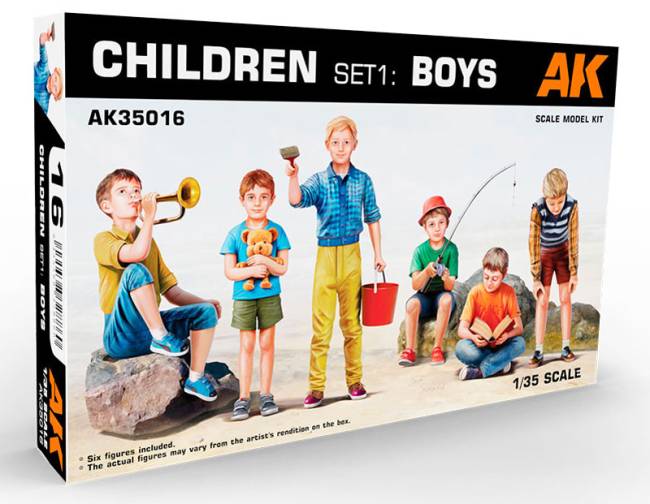 Manufacture Product Number : AKI-35016 This set includes six highly detailed, ready to assemble, 1/35 scale figures of male children which are represented in everyday positions, making them perfect for complementing any type of scene or diorama. |