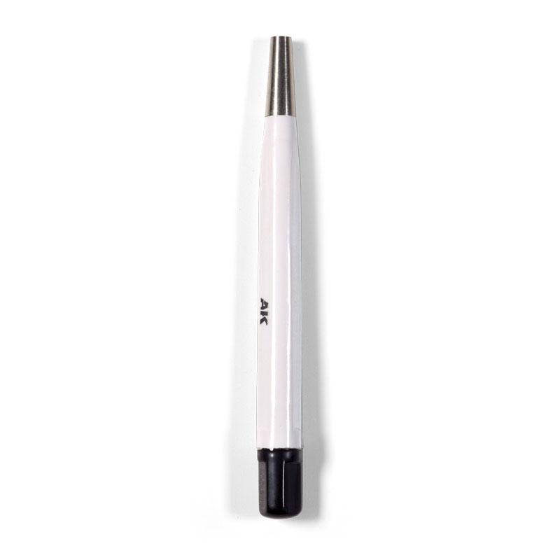 Manufacture Product Number : AKI-9542 | AK Interactive Fiberglass Bristle Pencil AKI-9542 7.99 The abrasive scratch brush with fiberglass bristles is ideal for accurate and rapid cleaning, derusting and surface preparation on a variety of materials. The propelling pencil action exposes more or less of the glass fibers. The shorter the fibers showing, the more abrasive the action. Ideal for derusting, deburring & cleaning photo-etch & injected plastics. With these pencils you will have the right brush for the right job. Swivel mechanism for moving the brush: Twist the end of the pen to push or retract the tip. CAUTION: DO NOT TOUCH THE TIP |