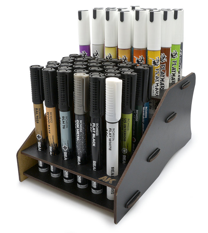 | Elegant desktop organizer made of black-laminated wood, laser-cut. Compatible with the Playmarkers (34) and Real Color MARKERS (34) ranges. |