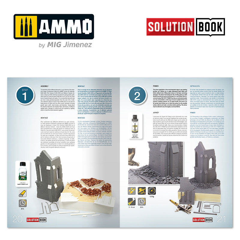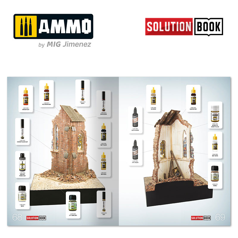Manufacture Product Number : AMIG-6510 SOLUTION BOOK - How to paint brick buildings will guide you through the entire process of painting and weathering the unique characteristics of brick buildings. |