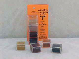 Manufacture Product Number : BRE-060 | This weathering powder will adhere to any non-glossy surface. It is not chalk. One quick step gives a very realistic rusty, dusty, or sooty surface instantly. No drying or curing is necessary. Use sparingly- a little goes a long way. This product is made from real rust and other weathering agents that have been ball milled to a particle size over 100 times finer than chalk and blended with a pressure sensitive, dry adhesive. Self adhesive to most surfaces. Nonmagnetic and nontoxic. Includes 1/2 oz bottles of light, medium, and dark rust and soot. |