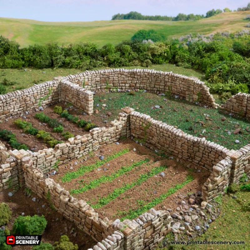 | Longest piece measures approximately 6.58" x 6.69" x 1.64". Item comes unpainted in 14 pieces (buildings not included). All items are printed in non-toxic PLA filament at a high 0.15mm resolution (and an ultra high 0.1mm resolution for small pieces). As with all 3D prints, some finishing may be required. Supplied unpainted and unassembled. Miniatures are for scale and not included. Items manufactured by Dungeon Artifacts, licensed printer of Printable Scenery Ltd 3D models are copyright to Printable Scenery Ltd |