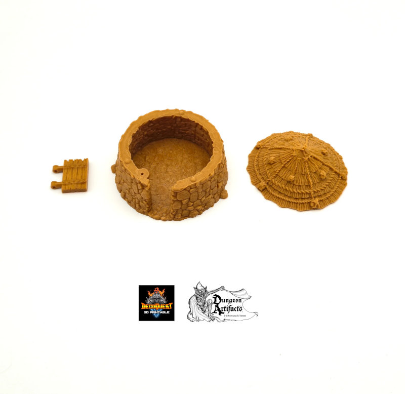 | The Rustic Round House is a great piece for your tabletop fantasy role-playing and historical wargames. The house measures approximately 3.79" x 3.92" x 2.52" This set comes unpainted in 3+ pieces. All items are printed in non-toxic PLA filament. For standard the item is printed at a high 0.15mm resolution. Color may vary. Dungeon Artifacts is a licensed merchant of Decoquest Workshop |