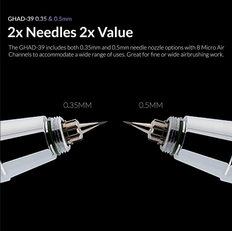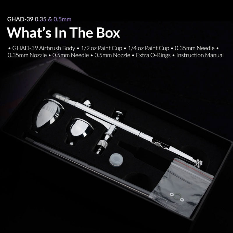 | Experience exceptional value with the Gaahleri GHAD-39 Advanced Series Airbrush—our most affordable model designed with beginners in mind. This airbrush delivers performance that exceeds expectations, making it the perfect choice for both novice and experienced users. Beginner-Friendly Value: The GHAD-39 is the ultimate value-for-money airbrush, providing excellent performance without breaking the bank. Cutaway Handle Design: Our thoughtfully designed cutaway handle enhances weight distribution, aesthetics, and visual feedback, ensuring a comfortable grip with no compromises. Changeable Cups: Each GHAD-39 comes equipped with both 1/2oz and 1/4oz smooth level paint cups, accommodating all your airbrushing needs for various projects. Double Needle, Double Value: With options for both 0.35mm and 0.5mm needle nozzles, along with 8 Micro Air Channels, the GHAD-39 is versatile enough to handle fine detailing or broader applications with ease. Great Atomization: Our unique nozzle design allows for effortless, superior atomization effects, ensuring smooth and consistent application every time. Easy to Clean: The smooth surface of our Gravity Fluid Cups maximizes cleaning efficiency, eliminating paint accumulation and making maintenance a breeze. Versatile Usage: Whether you’re engaged in fine arts using the 0.35mm needle or tackling broad surfaces with the 0.5mm option, the GHAD-39 adapts to your needs with ease. Detachable Cups: The detachable cup design simplifies cleaning and maintenance, helping to prevent clogs and prolonging the lifespan of your airbrush. Elevate your airbrushing experience with the Gaahleri GHAD-39 Advanced Series Airbrush—where quality meets affordability, allowing you to unleash your creativity like never before! |
