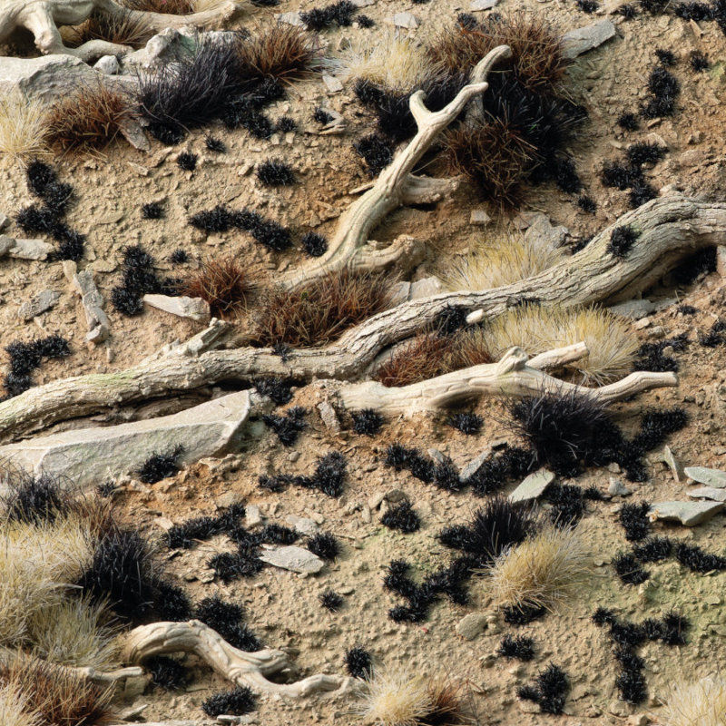| Very small and low tufts with black shades. Best used to simulate dark crustose lichens on rocks, bark, and shaded ground. In combination with other colours and textures, they provide realistic detail. At very small scales, they are perfect to recreate rugged, weathered surfaces. This sheet contains around 500 Tiny Grass Tufts for your scale models, hobby figures and scenic dioramas. Tufts peel off the sheet one by one and they are ready to use. |
