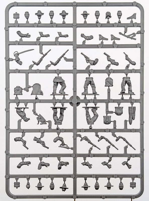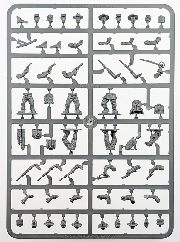 | Build your troop as figures from the U.S. Cavalry, including the 9th and 10th Buffalo Soldiers. Armed with pistols, carbines, and frontier grit, they bring discipline and firepower to a town where justice walks tall and trouble never sleeps. The figures in this box set can be used to represent either the U.S. Cavalry or Buffalo Soldiers Factions from Dead Man’s Hand. Includes 10 multipart plastic miniatures with more customization options than a quartermaster on payday. The sprue’s packed with pistols, cavalry carbines, and everything you need to arm your troop, optional extras include a trusty dog, ready to sniff out trouble or steal the scene. DEAD MAN'S HAND is the 28mm skirmish game by Great Escape Games. Bands of tough and wily Cowboys, stoic Lawmen, ruthless Outlaws and crazy Desperados fight for fame and respect in the Old West. All models are supplied as kits and will need to be assembled and painted. The picture illustrates how the model should look once completed. Glue and paint are not included in the kit. |