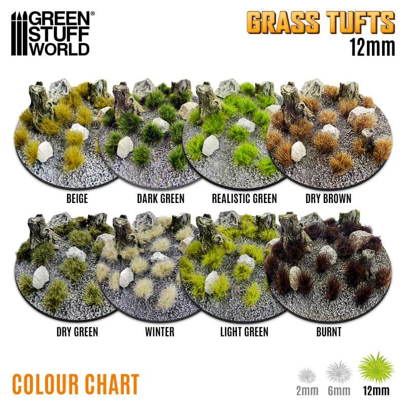 Manufacture Product Number : GSW-SNG-12937 | Model grass clumps, also known as grass tufts, are a revolutionary solution for creating detailed and realistic landscapes in your miniature, diorama, and scenery projects. Their self-adhesive design greatly simplifies the decorating process: simply peel off the tufts of grass with precision using tweezers or your fingers, and adhere them to the desired surface. Although its built-in adhesive ensures a solid initial hold, applying a small amount of additional modeling glue on uneven surfaces is advisable to ensure permanent and optimal adhesion. They have been meticulously designed with premium materials, ensuring a natural, long-lasting look to your creations. Their density and texture provide impressive realism, making them the ideal choice for bringing your designs to life with a touch of authentic nature. For more realism combine them with our static grass, basing materials, and textured paints. Fiber Size: 12mm high Plastic sheet size: 7x14 cm Content: 75 tufts |