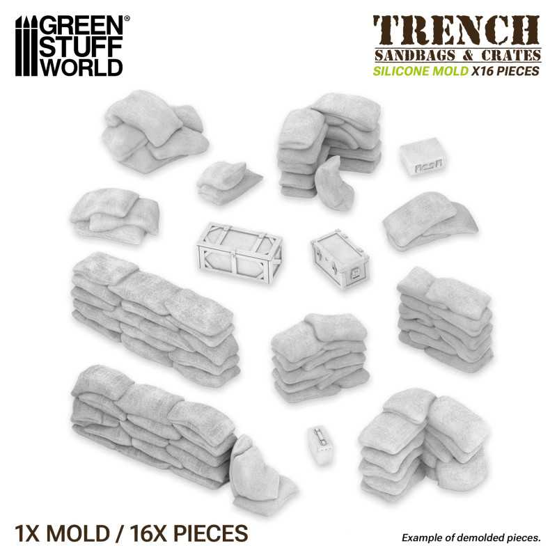 | The silicone mold for sandbags from Green Stuff World is designed to create highly detailed military sandbags in 1:48–1:35 scale, ideal for models, dioramas, and miniature games. Thanks to its realistic proportions, it allows you to reproduce parapets, defensive positions, and improvised fortifications that fit perfectly into war, historical, and dark fantasy scenarios. This mold is especially useful for recreating trench lines, fortified areas, and tactical cover, providing a professional level of detail for both modelers and wargamers. This product has been designed to be fully compatible with the game Trench Crusade, a wargame and narrative universe that blends dark horror, grimdark fantasy, and the warlike aesthetics of World War I. In this type of setting, where deep trenches, fortified positions, artillery-devastated areas, and improvised parapets abound, sandbags are a fundamental element. With them, you can recreate machine gun nests, reinforced barricades, protective walls, and cover points that fit perfectly with the industrial, baroque, and militarized atmosphere of the game. In addition, these trench molds are equally compatible with futuristic or sci-fi games where sandbag parapets still make visual and tactical sense. In Warhammer 40,000, for example, this compatibility allows them to be used to represent improvised imperial defenses, Astra Militarum fortifications, advanced firing positions, or cover zones in war-torn worlds. In Star Wars Legion, they work very well as part of rebel bases, improvised Republic camps, urban resistance zones, or barricades on battlefields set in desert, frozen, or jungle worlds. Other skirmish or battle games that often use trenches, cover, and improvised defenses on similar scales also benefit from these types of elements, such as Bolt Action, Chain of Command, Spectre Operations, Konflikt '47, Alpha Zone, Maelstrom's Edge, Five Parsecs From Home, or even Kill Team. The versatility of the mold allows you to obtain sandbags that fit naturally into any war setting, modern or fantasy, and their detail makes them an excellent choice for both scenery and customizing bases or dioramas. Made from high-quality flexible silicone, easy to use and capable of reproducing sharp details, these molds are heat-resistant (up to 240°C) and extremely durable. Their design offers highly detailed results, with clean textures and defined reliefs in both the overall volume and the wrinkles and seams typical of real sandbags. Each mold has a usable surface area of 6 × 12 cm, enough to produce multiple pieces in a single pour. The molds work perfectly with all types of resins, although we especially recommend the use of acrylic resin. It is important to allow the material to cure completely before removing the pieces from the mold. Other materials such as Milliput, Milliput mixed with plasticine, Magic Sculpt, or other epoxy putties can also be used, although they are somewhat more difficult to work with. For optimal results, we recommend using flexible steel scrapers to remove excess putty or clay without damaging the mold surface. |