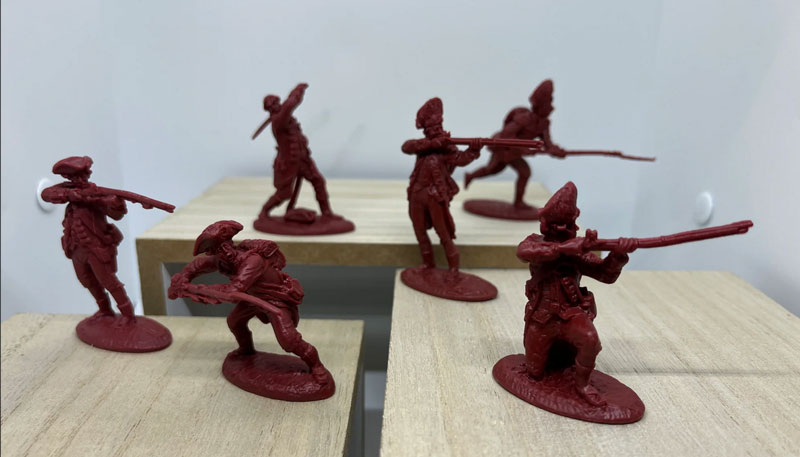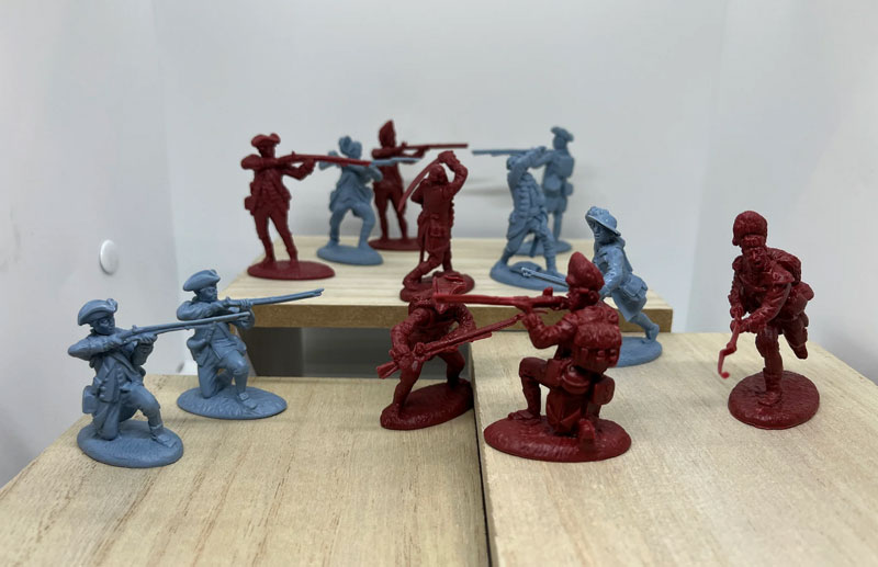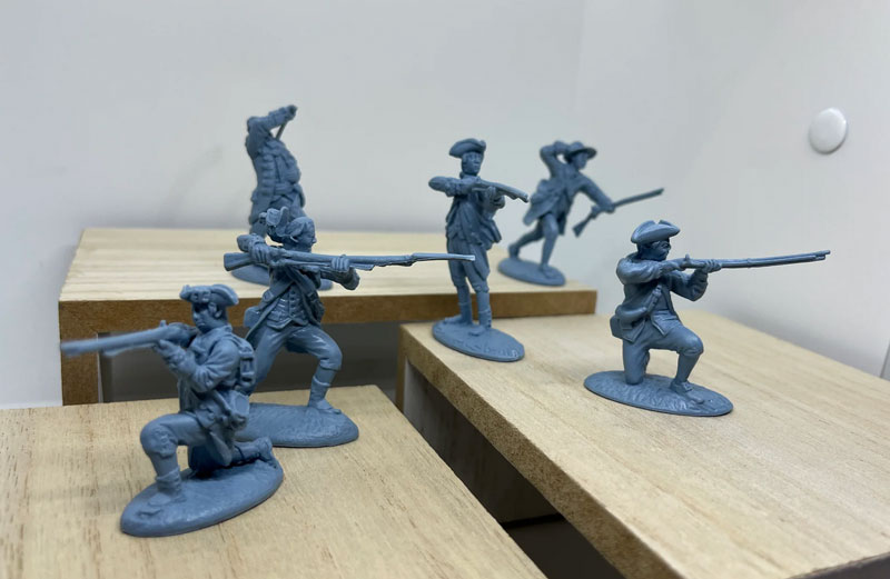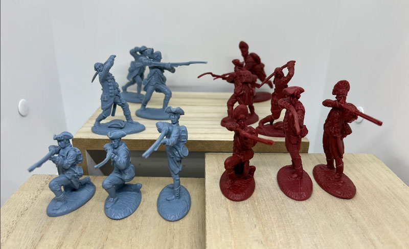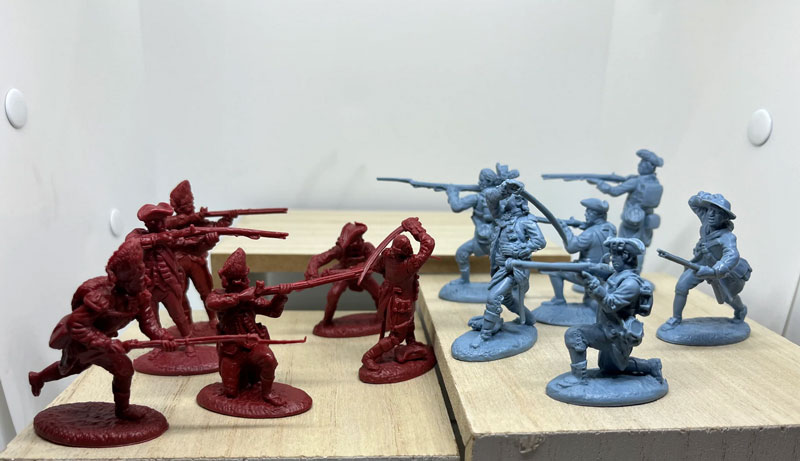 The Rev War starter set includes twelve (12) figures with six (6) combatants from both sides of the conflict. Taking poses from five of our popular Rev War sets, these figures represent a fun entry point into the LOD collection. Fans of the Colonial Minutemen, British Grenadiers, British Regulars, Continental Light Infantry, and Continental Regular Army will find at least one figure included in each set. Each side includes three shooting poses, one officer, one soldier running into combat, and one soldier engaged in bayonet fighting. A great way to introduce fans of history to the figure sets and the multiple poses available. |