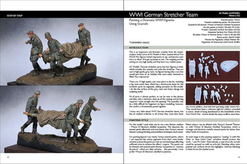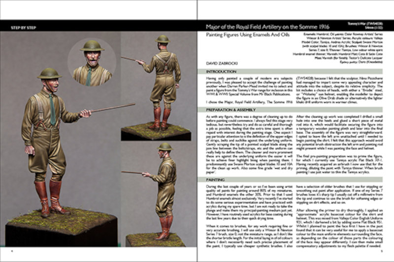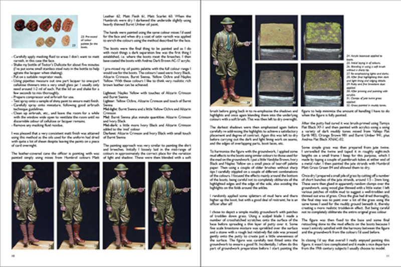 | 4 Major of the Royal Field Artillery on the Somme 1916 Painting Figures Using Enamels And Oils 12 WWI German Stretcher Team Painting a Dramatic WWI Vignette Using Enamels 18 German WWI Stormtrooper, 1917 How to Place a Figure in a Realistic Setting 24 Private, 1st Battalion Gordon Highlanders, Le Cateau 1914 Painting a Scottish WWI 54mm Figure 26 Captain John Bradstock South Wales Borderers, Tsingtao 1914 Painting Khaki Uniforms & Flesh Tones 32 Private, 1st Battalion Lincolnshire Regiment, Mons 1914 Painting a WWI British Soldier in Action 34 WWI Early War German Ace Oswald Boelcke in 54mm Painting Realistic Personalities in Miniature with Acrylics 42 First World War German Airmen Painting a Imperial German Air Service Pilot and a Mechanic in 54mm 46 British Trench Raider Painting a 75mm British Soldier of the First World War 49 British Soldier at Gallipoli Painting a British Private of 1/7th Battalion Lancashire Fusiliers at Cape Helles 1915 52 Edward Corringham “Mick” Mannock, VC, DSO & Two Bars, MC & Bar (24th May 1887 – 26th July 1918) Painting a WWI Large Scale Bust of a Real Person Using Enamels 56 James McCudden VC WWI British Ace Pilot Bust of James McCudden VC, 56(F) Squadron Royal Flying Corps Painted in Enamels 60 First World War German Stormtrooper Painting an AC Models WWI Stormtrooper 63 The Black Knight of Germany Painting the WWI German Flying Ace Eduard Ritter von Schleich 66 Billy Bishop - A Canadian Pilot in No. 60 Squadron Royal Flying Corps 1917 How to Paint a Pilot’s Leather Flying Coat and Equipment 68 World War One British Artilleryman Painting a 75mm British Artilleryman Using Acrylics 72 WWI German Stormtrooper Updating and Improving a 1/35 Scale Hard-Plastic Figure Using Metal Foil, an X-Acto Knife, Liquid Glue and a Hornet Head 76 First World War British Lewis Gunner Painting a Large Scale Bust of a WWI British Soldier Using Different Colour Mixes and Techniques |