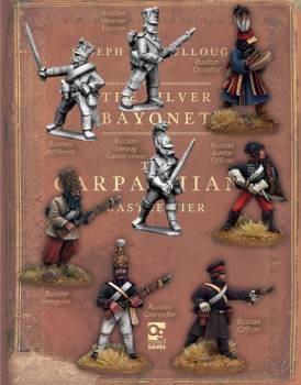 | To play the Silver Bayonet, you choose an Officer figure from your preferred nation, and you recruit a special unit of skilled Soldiers to take on investigations and to battle against supernatural forces. We have put together a typical Russian Unit for you to use in The Silver Bayonet. You can use this Unit, or combine them with the first Russian Unit. The figures represent: An Officer A Junior Officer An Artilleryman A Heavy cavalryman A Veteran Hunter An Irregular An Occultist A Grenadier All figures are 28mm sized, made of metal and supplied unpainted. All models are supplied as kits and will need to be assembled and painted. The picture illustrates how the model should look once completed. Glue and paint are not included in the kit. |