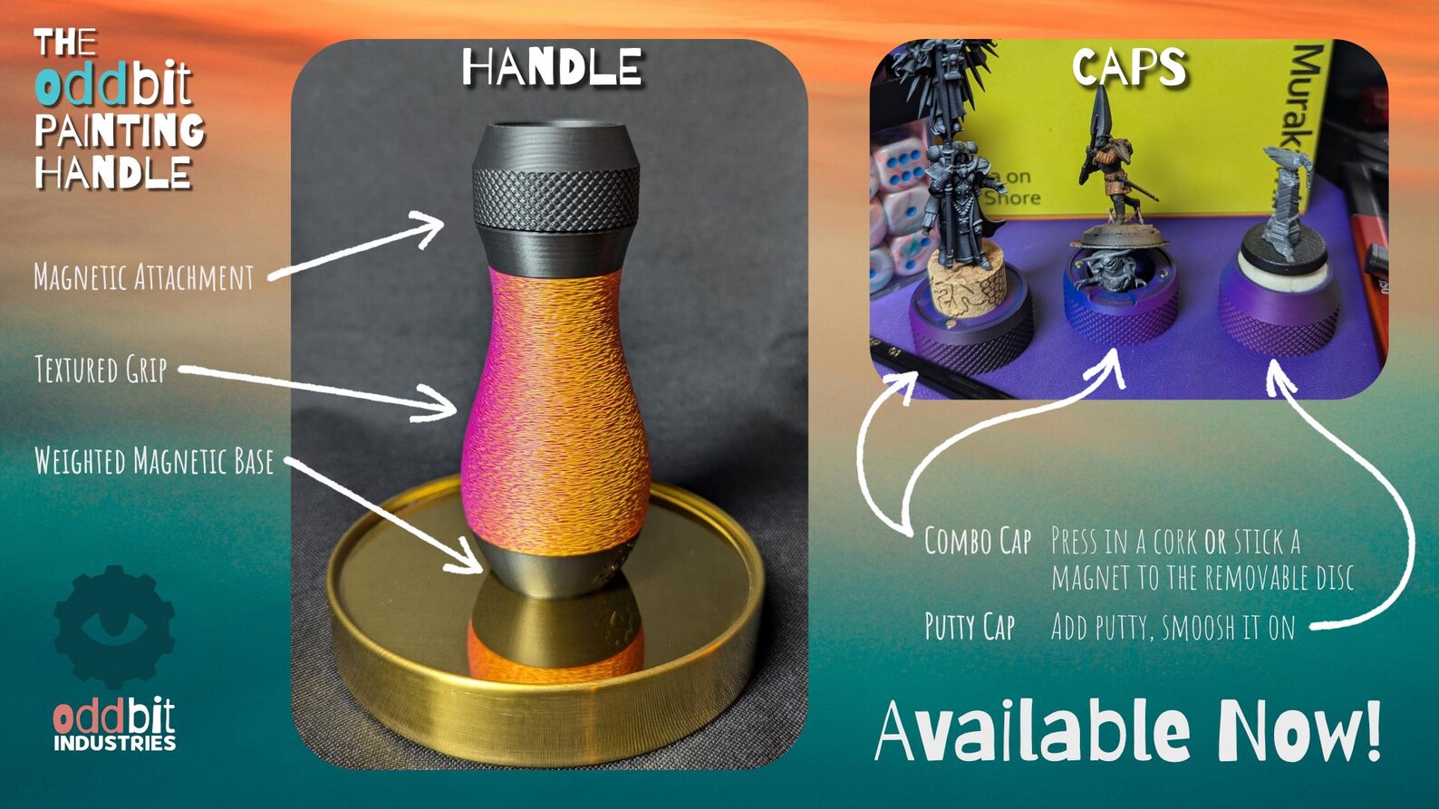 Features: -Perfectly weighted for stability and comfort -Anti-slip textured grip -Innovative modular cap system -Magnetic cap attachment and magnetic base Each handle comes with: -1 Putty Cap to smoosh minis onto -1 Combo Cap with a removable metal plate for magnetized minis, AND a socket for standard-sized wine corks—perfect for precision pinning! -1 adhesive-backed steel disc to give your handle a secure home when it's off duty |