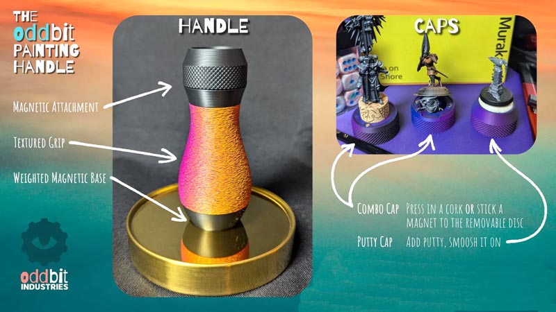 Manufacture Product Number : OBI-1011 Who says your painting tools have to be boring? Meet the Oddbit Miniature Painting Handle—your new hobby sidekick that’s just as colorful and clever as your wildest paint schemes! Designed from the ground up to solve problems and enhance vibes, our handle stands out—and gets out of your way—in equal measure. This one comes in a awe insiring Sunset Color and it's MADE IN MICHIGAN. |