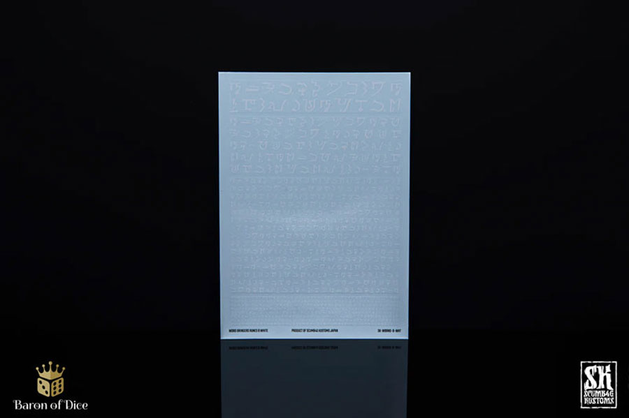 | The Hell Bearers Runes B waterslide decal sheet consists of arcane rune symbols in four sizes grouped together by shaped film, allowing entire rows of runes to be cut out at once or individual symbols to be separated as needed. This makes it easy to apply single runes, short sequences, or extended inscriptions while minimizing wasted decals. The four size groupings provide flexibility across a wide range of applications, from small armour details and banners to vehicles, large armour panels, and terrain pieces. The script-like rune style is well suited to creating the appearance of ritual text, forbidden scripture, or arcane inscriptions across models of all sorts. The sheet layout is designed to give you as many decals as possible, and the use of shaped film makes sure you can achieve a crisp painted on look. Sheets are approximately A6 size. |