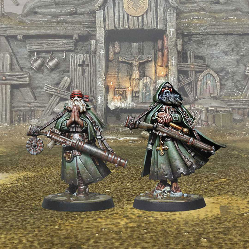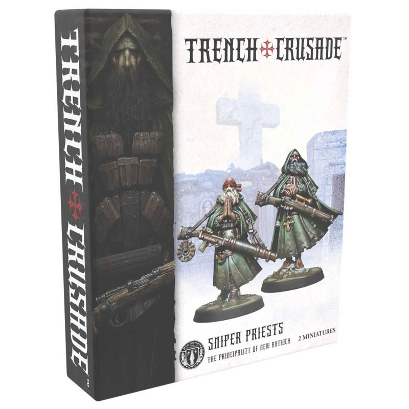 | This box contains 2 plastic miniatures that can be assembled with a variety of heads, weapons and equipment. The Sniper Priests of New Antioch are the undisputed masters of long range warfare. Ritually blinding themselves to avoid any chance of doubt, a Sniper Priest aims through faith in the Lord alone, enabling unparalleled accuracy whether they be firing a sniper rifle, heavy automatic weapon, or even a grenade launcher. |