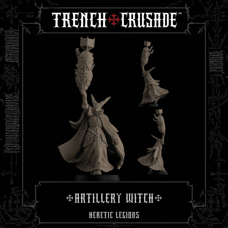 Manufacture Product Number : TRC-TCPM1009 Shrouded in elaborate garments, Artillery Witches stalk the battlefield with an eerie elegance, yet they are among Hell's most dangerous and mysterious creations. Possessing the power to summon ordnance directly from the factories of Hell’s Third Circle, they can obliterate enemy fortifications with a mere gesture. This kit contains 1 resin miniature. Includes a 32mm plain plastic base. Items come in generic packaging. Created by Factory Fortress inc and produced by Dungeon Artifacts |
