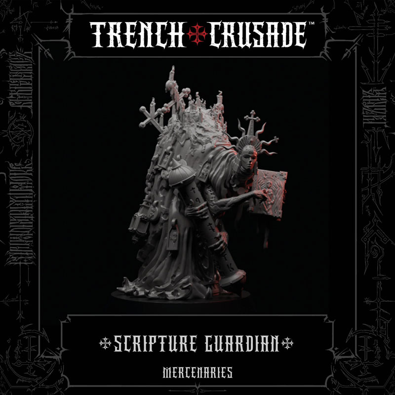 Manufacture Product Number : TRC-TCPM9911 Scripture Guardians, once buried in solemn sanctity, now wander No-Man’s Land. These fabled beings appear indifferent to the war beyond the preservation of their sacred writings, yet when offered a holy tome of their faith, they may bind themselves to the warband that presents it. In return, they wield the words of the One True Language as a weapon, channeling power capable of unraveling the very fabric of existence. Items come in generic packaging. Created by Factory Fortress inc and produced by Dungeon Artifacts |