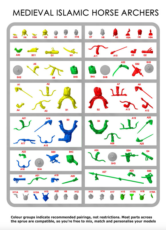 Manufacture Product Number : VIC-VXM008 | This set contains: - 12 Horse Archers - Mix of both Sejuk & Turkoman head - Wide variety of bow arm poses, including left arm poses - Mix of shields that can be both applied to arms or hanging off horse saddle - Standard bearer options and drawn swords - Arrow quivers and bow cases Horse archers were the backbone and majority troop type of all Islamic armies during the Crusades. We have a great mix of heads for this set depicting Seljuk and Turkoman warriors. Turkomans fought in extensive numbers as auxiliaries in Seljuk and other Islamic forces. All models are supplied as kits and will need to be assembled and painted. The picture illustrates how the model should look once completed. Glue and paint are not included in the kit. |