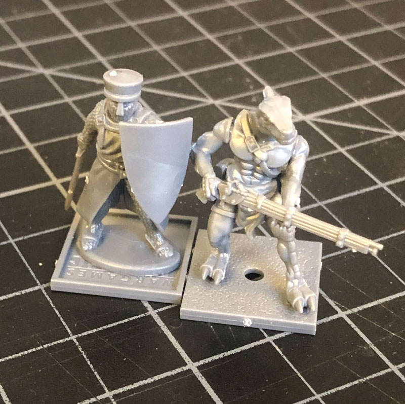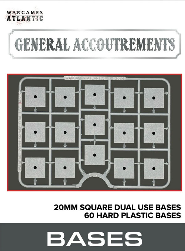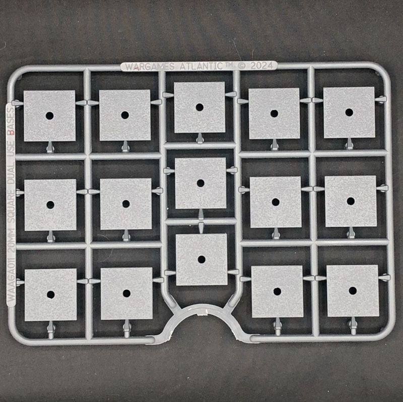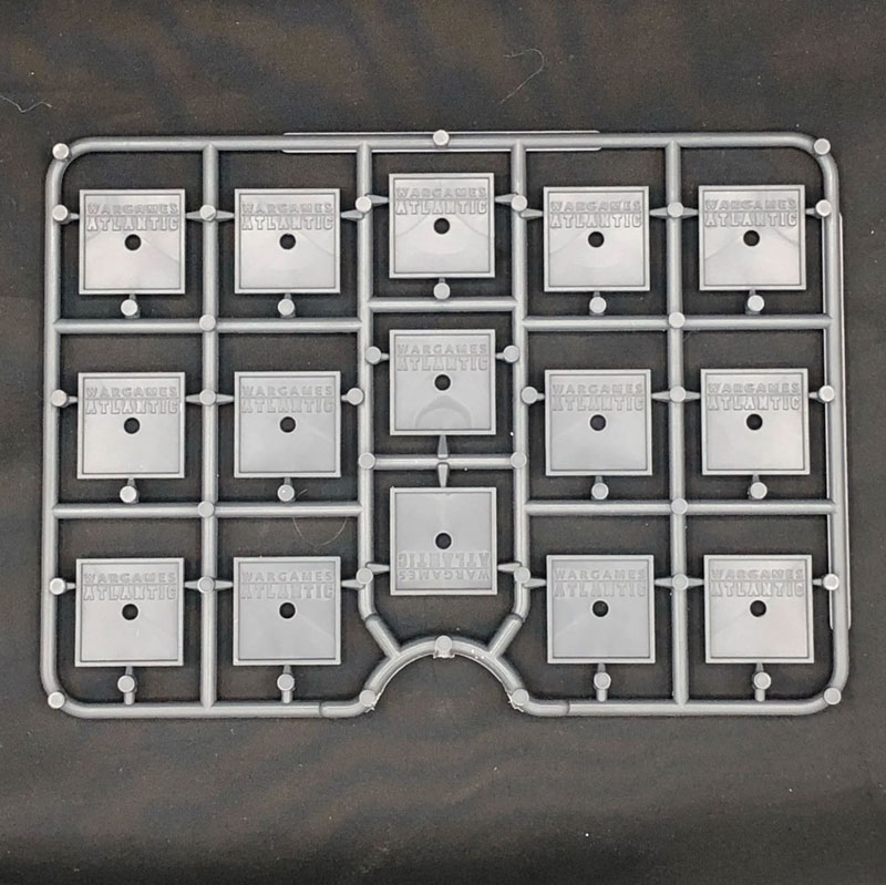 These are a new kind of base that has been designed to work with figures that have either an integral “puddle” base or flat feet. One side has a 1mm indented recess so that figures with puddle bases will have their feet flush with the edge and eliminate that “standing on a hill” look. The other side is flat for figures which will have their feet glued directly to the base. These bases have a low 2mm profile to blend well with the tabletop and there is also a 3mm x 1mm hole to add a magnet for secure storage or for use with a movement tray. |