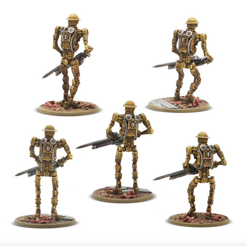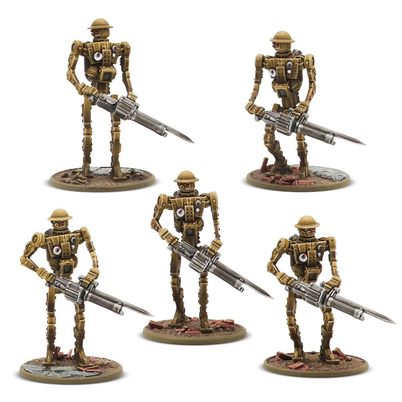 Manufacture Product Number : WLG-452200602 Box contains five Warlord Resin Mk I Automated Infantry armed with MMGs, plastic bases, and assembly guide. |