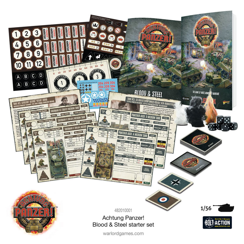 | The Blood and Steel starter set contains everything you need to start playing Achtung Panzer. Warlords excellent Tank based game. |